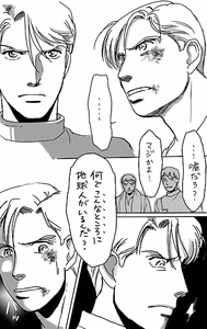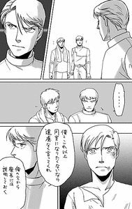 こんなとこ、は直接的には士官学校、の意味で書いてますがまあククトでもいいしおれたちのまわり、って抽象的な感覚でもいいし。ついさっきまで親しく言葉を交わしていたのにこんなにすぐ豹変してしまうかなあとちょっと考えたんですが……人からよくない噂とか聞いただけで態度が豹変するっていうやつは結構あるっていうか、逆にそうならない(自分の感覚を主体にできる人)の方が少ないよな、ってことで。しかし本人のいる前で聞こえよがしに言えるっていうのも…性格きついわねこの人、という(^^;